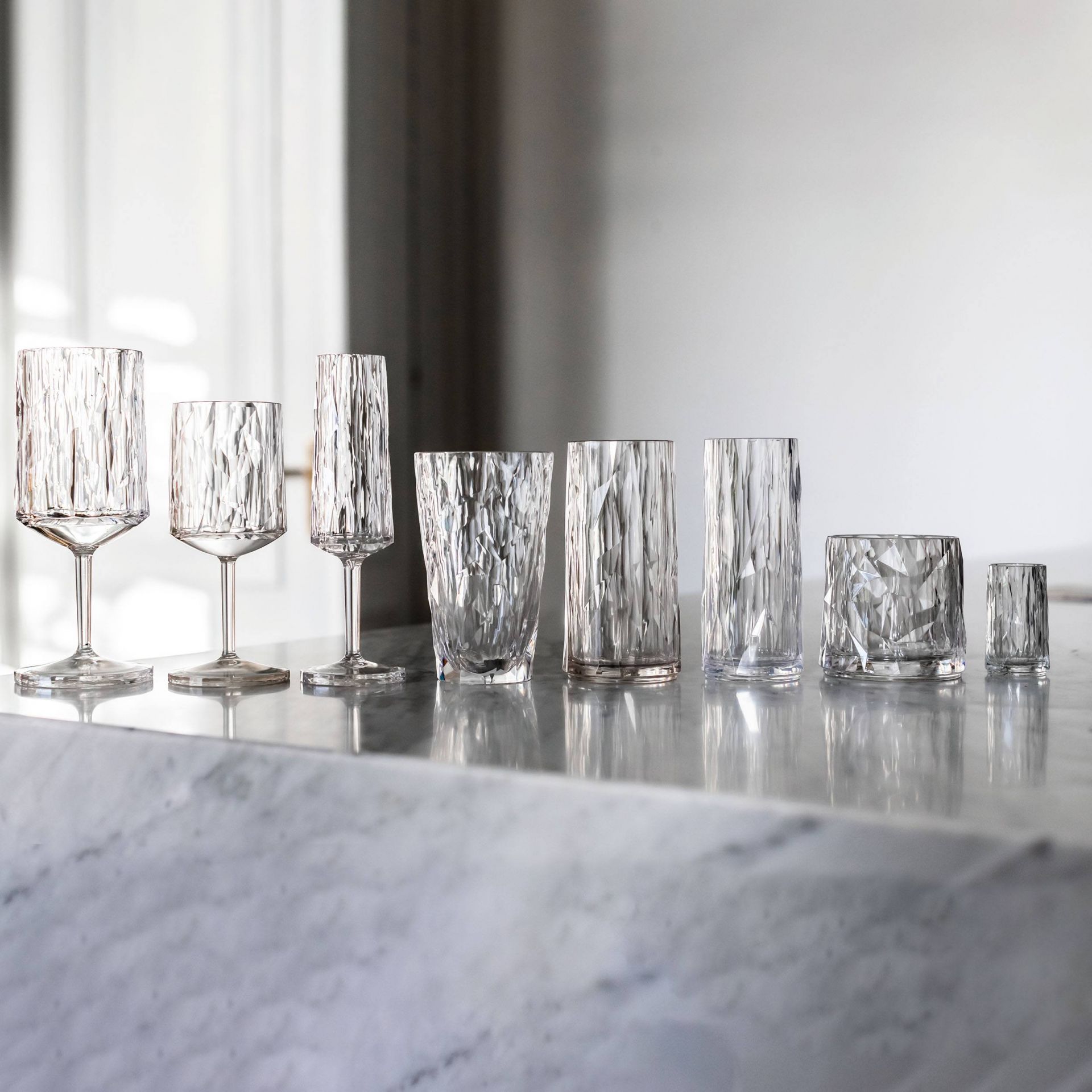 From stylish cocktail glasses, sophisticated wine glasses and crystal serving bowls, each item is crafted with a keen eye for detail, leaving you with glassware that’s sparkling, luminous and brilliant.